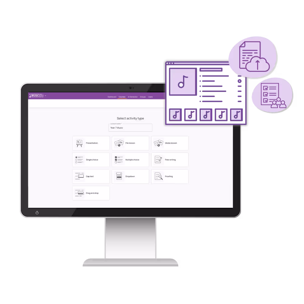 Beautiful, simple library for scores, worksheets, audio, and videos. Use the content you already have to create new, interactive activities that are marked by the platform